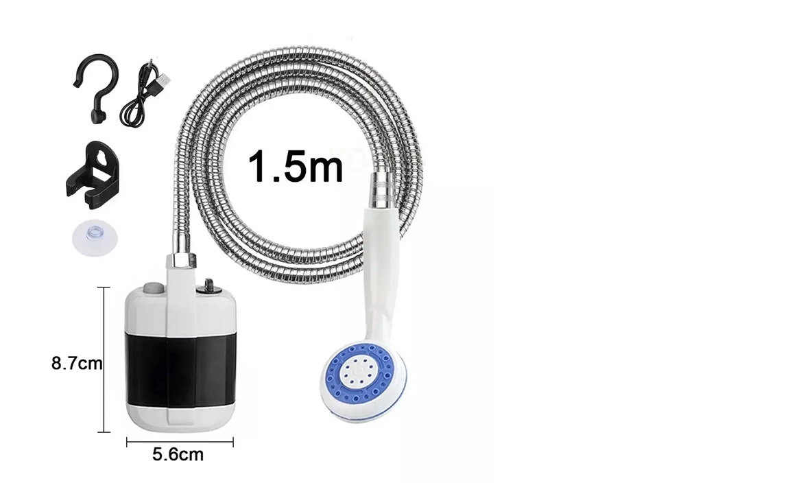 Disfruta de una ducha al aire libre con esta ducha portátil para camping. Simplemente coloca la bomba de ducha en el agua y enciéndela para obtener una ducha refrescante.